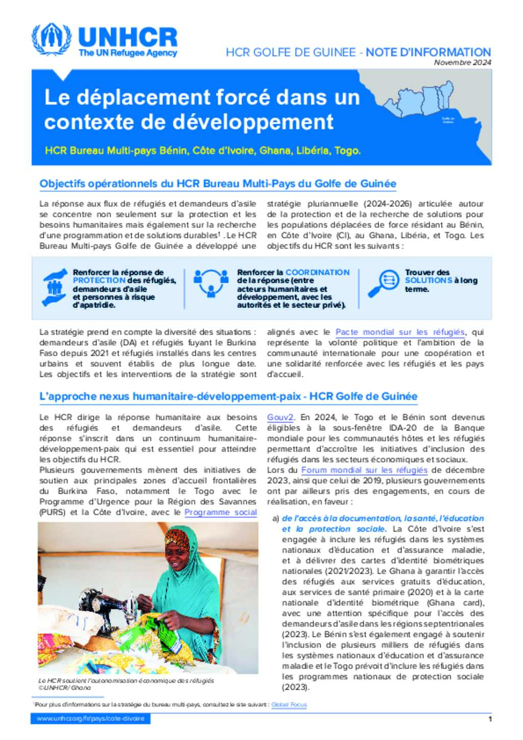 HCR Golfe de Guinée – Note d'Information Déplacement forcé et inclusion socio-économique au Bénin, Côte d'Ivoire, Ghana, Libéria et Togo Novembre 2024