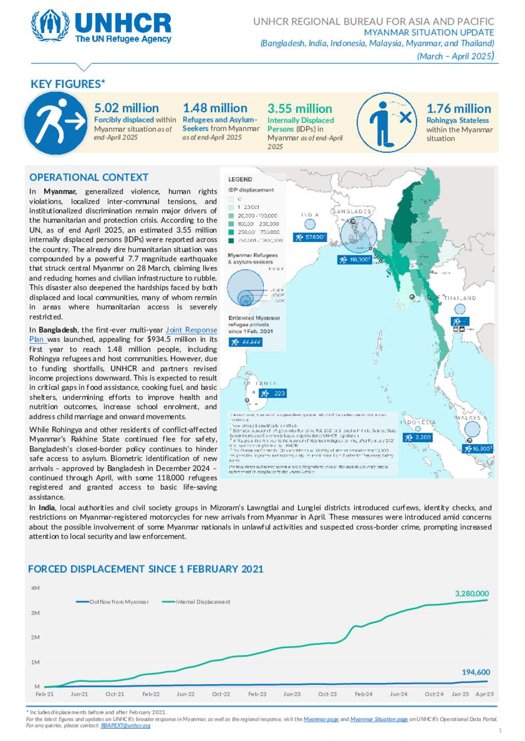 UNHCR Myanmar Situation Regional Update #2 (March - April 2025)