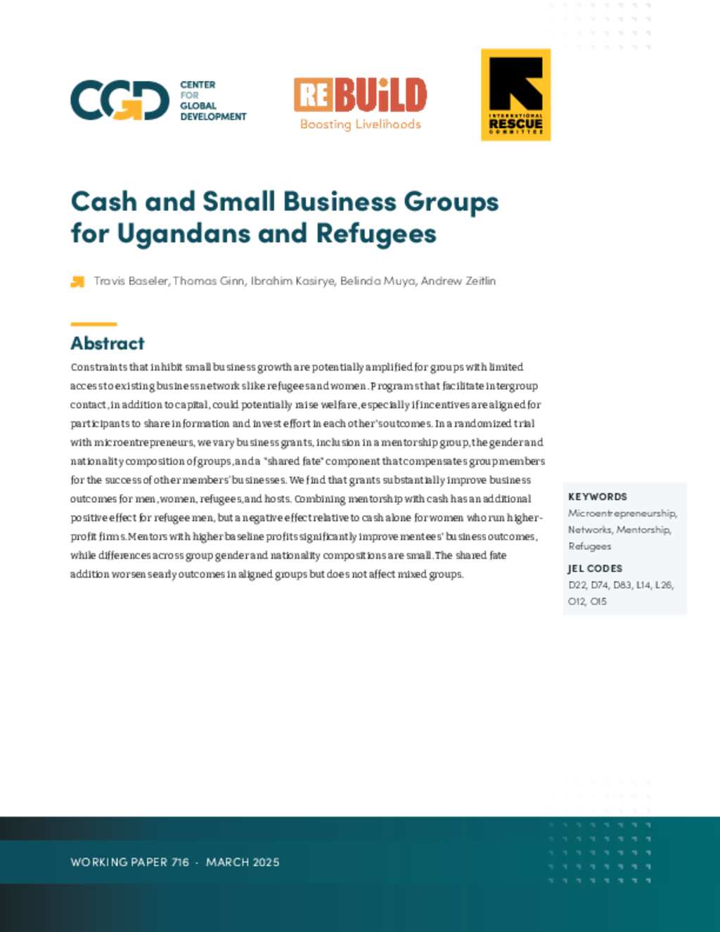CGD Working Paper - Cash and Small Business Groups for Ugandans and Refugees