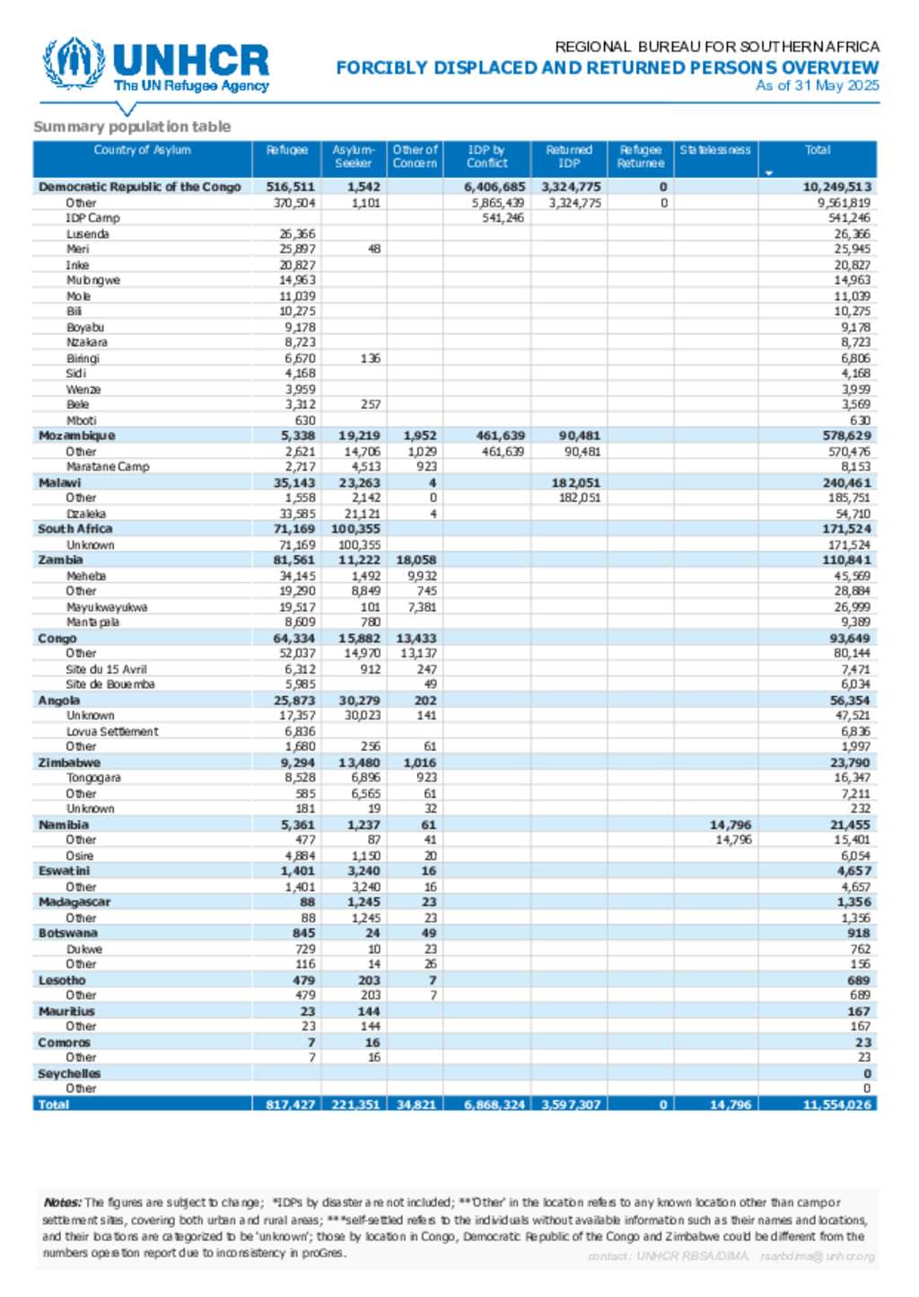 Comprehensive regional analysis of the UNHCR’s population by asylum country and location - May 2025
