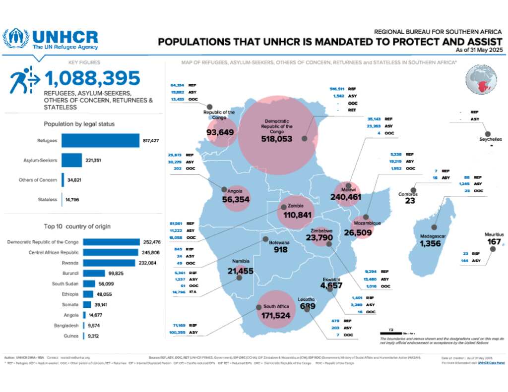 Overview of refugees, asylum-seekers, and others of concern in Southern Africa - May 2025
