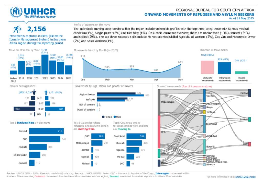 Overview of onward movements in the Southern Africa Region - May 2025