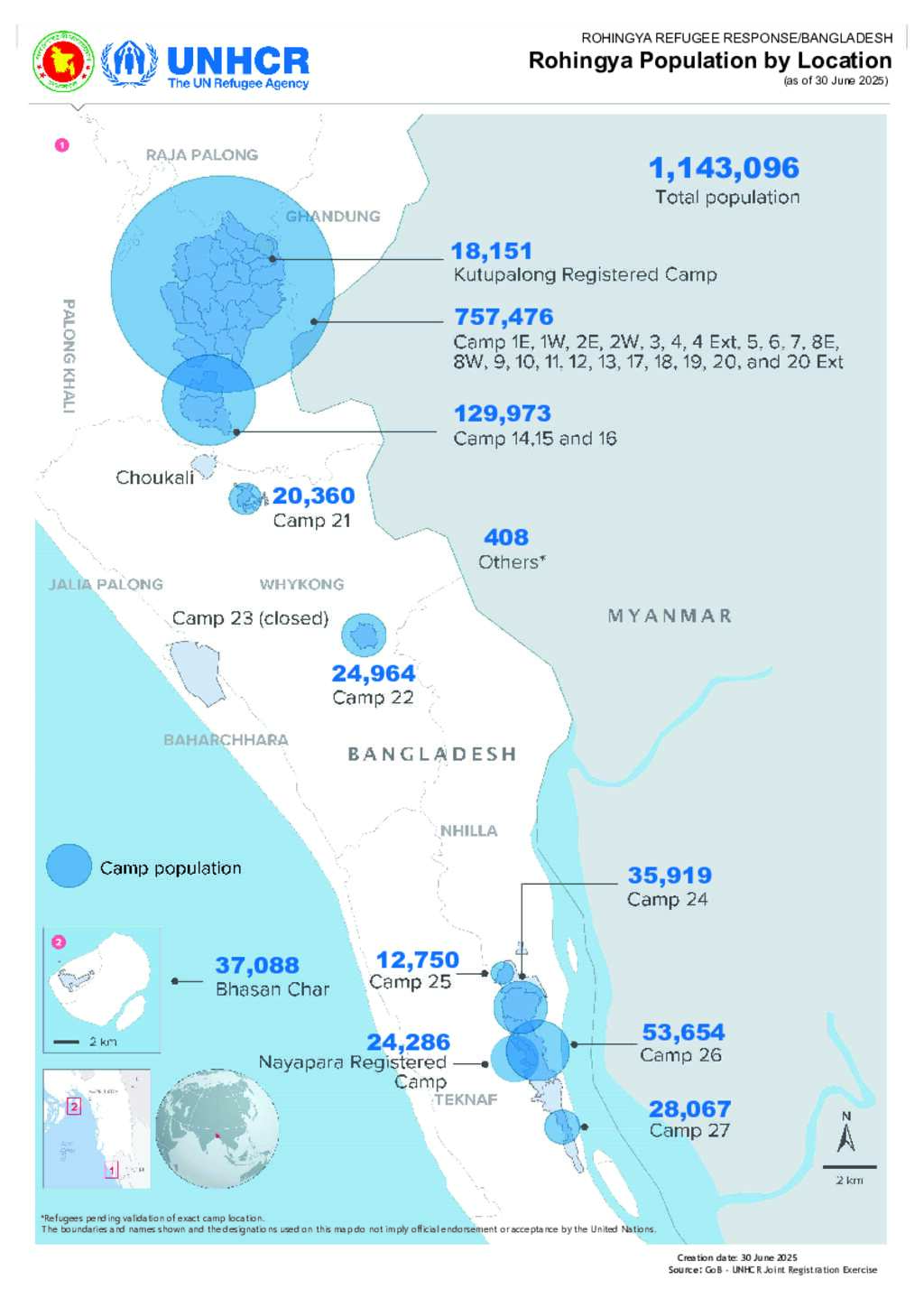 Joint Government of Bangladesh - UNHCR Population map as of June 2025