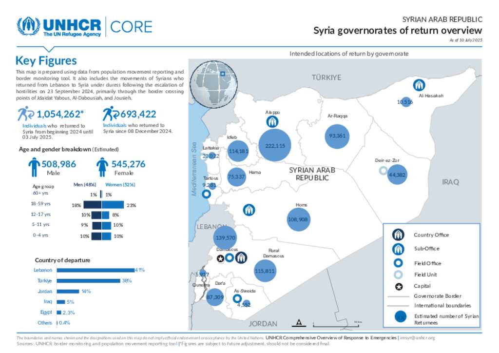 Syria governorates of return overview (As of 10 July 2025)