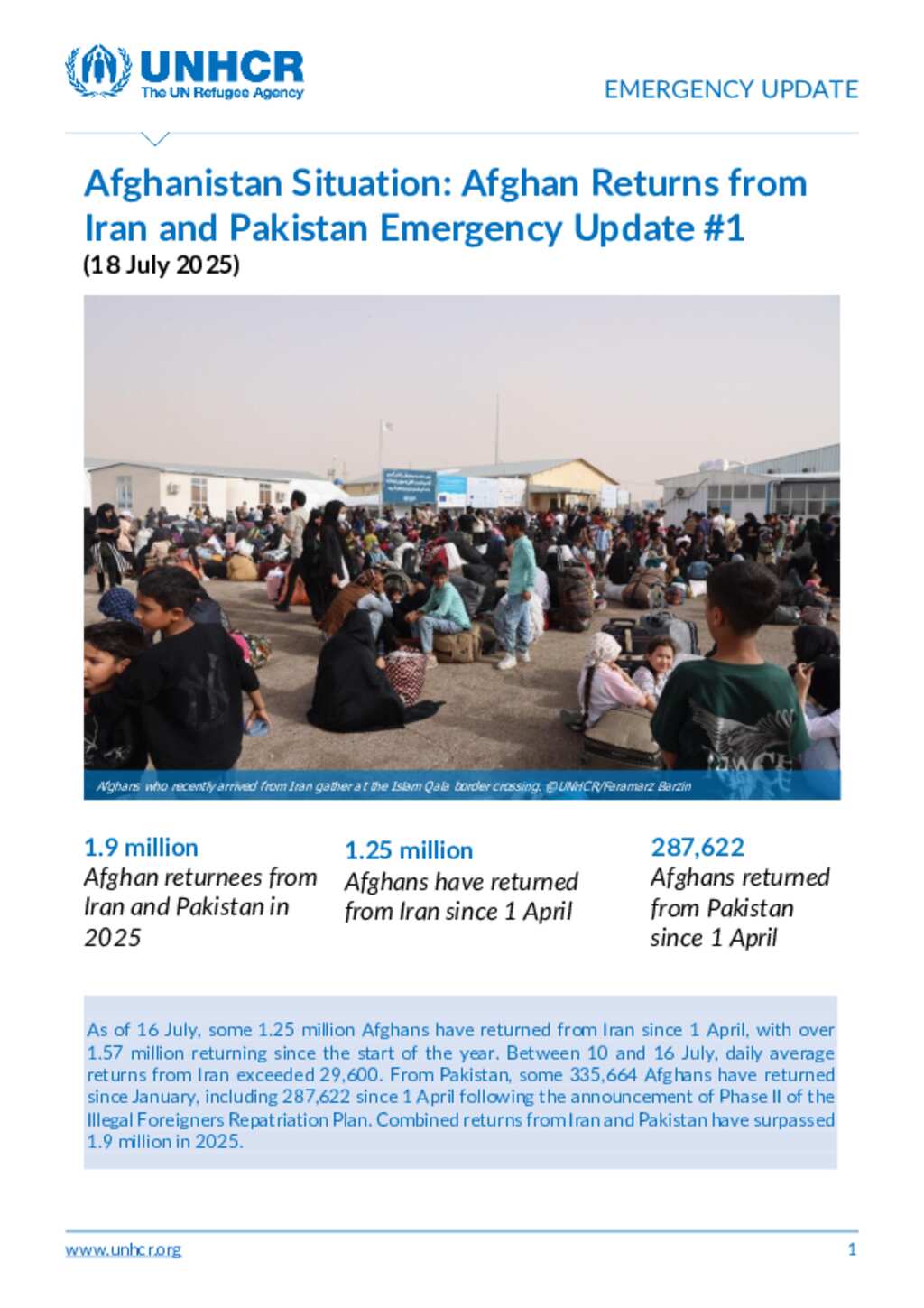 Afghanistan Situation: Afghan Returns from Iran and Pakistan Emergency Update #1