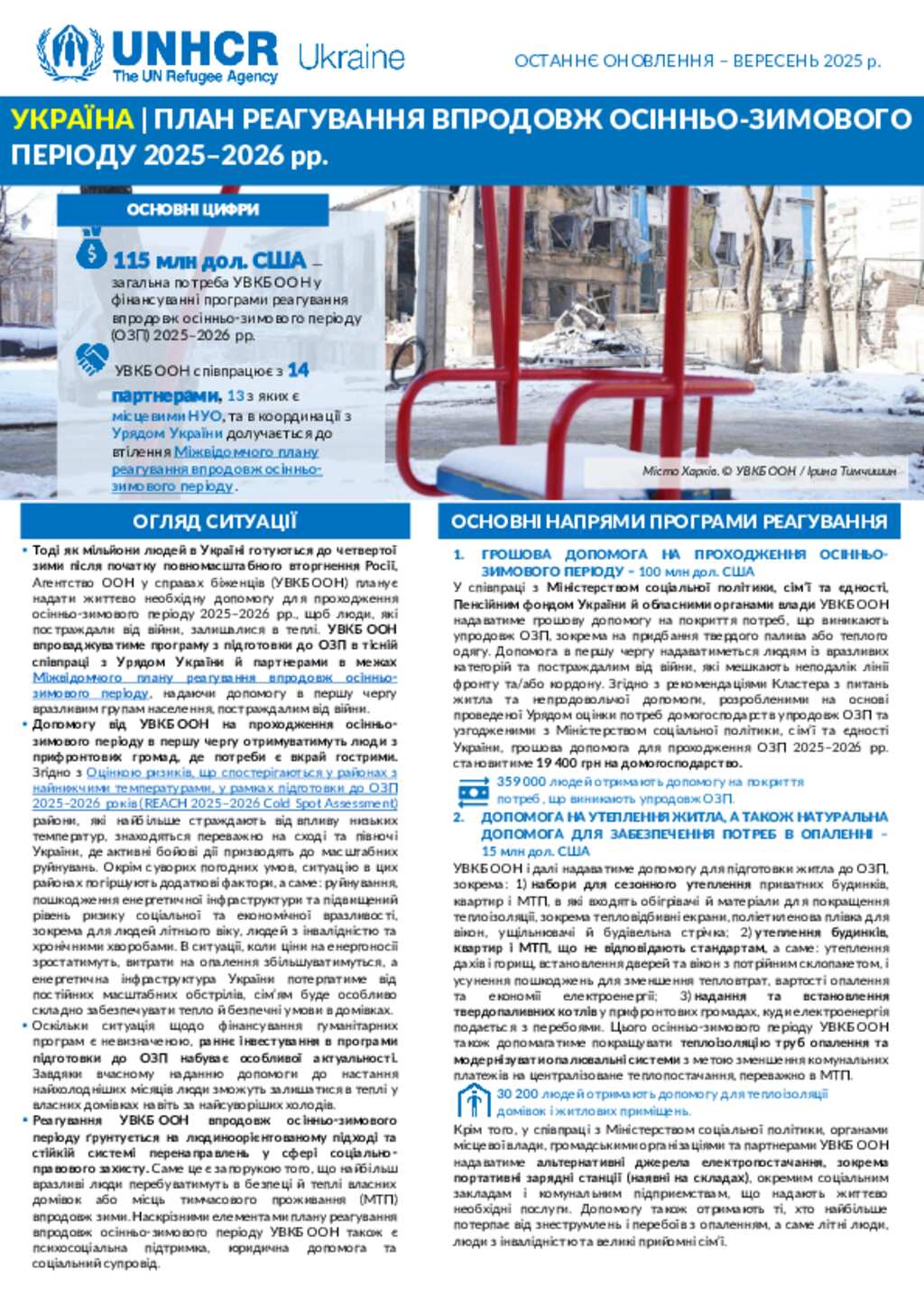УВКБ ООН Україна. План реагування впродовж осінньо-зимового періоду 2025–2026 рр.