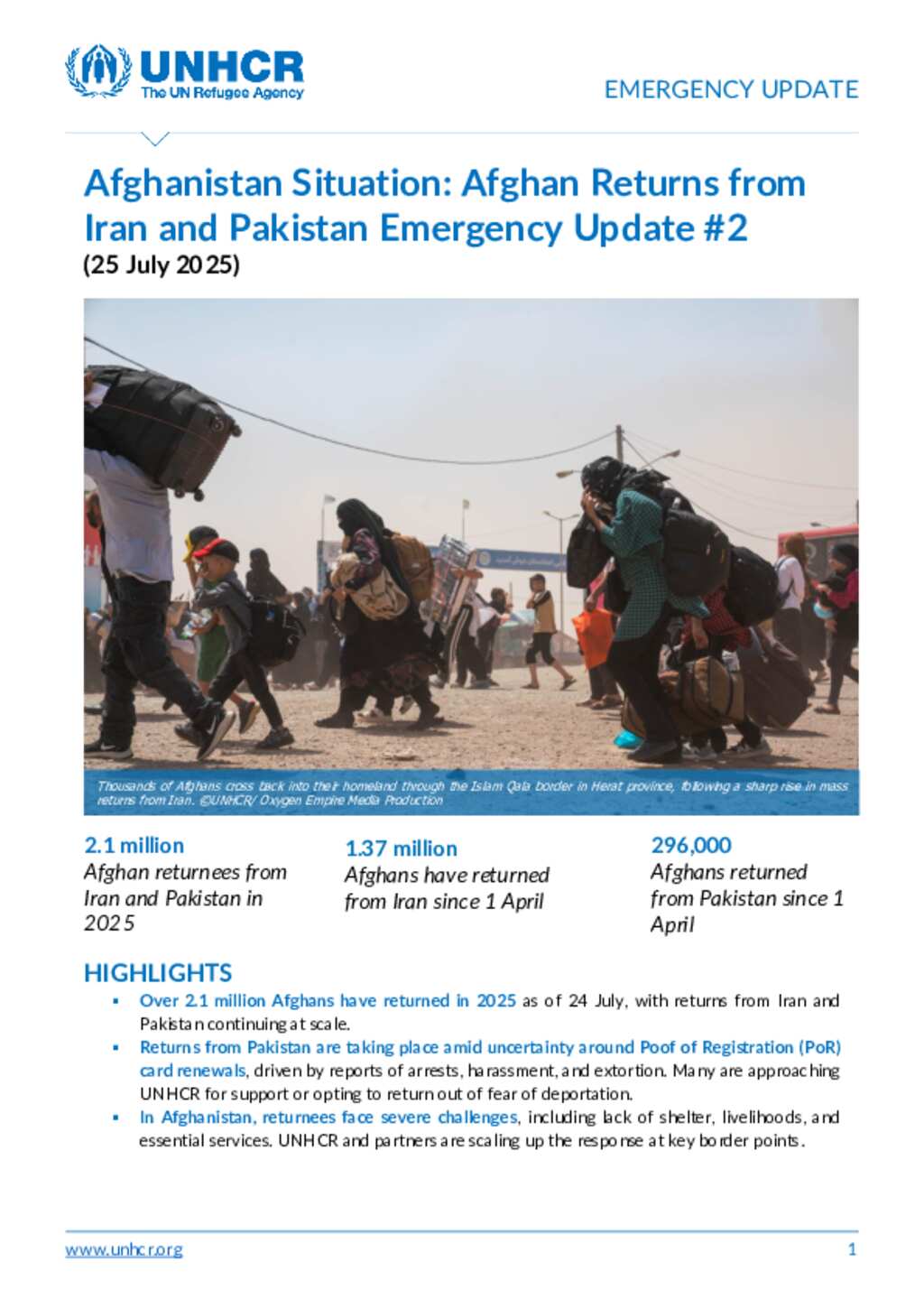 Afghanistan Situation: Afghan Returns from Iran and Pakistan Emergency Update #2