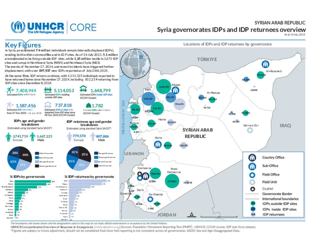 Syria governorates IDPs and IDP returnees overview (As of 24 July 2025)