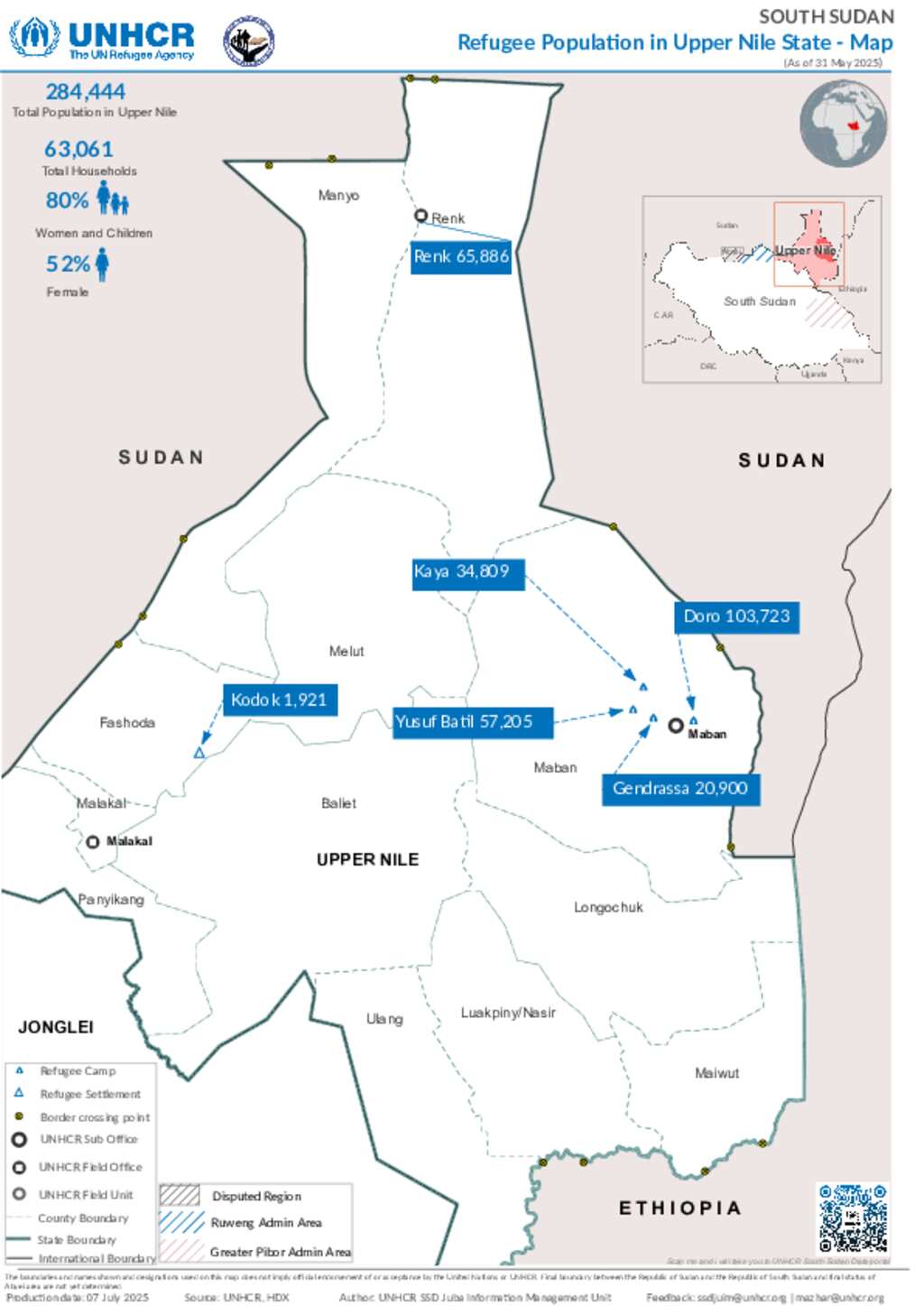 South Sudan - Refugee Population in Upper Nile State - 30 June 2025