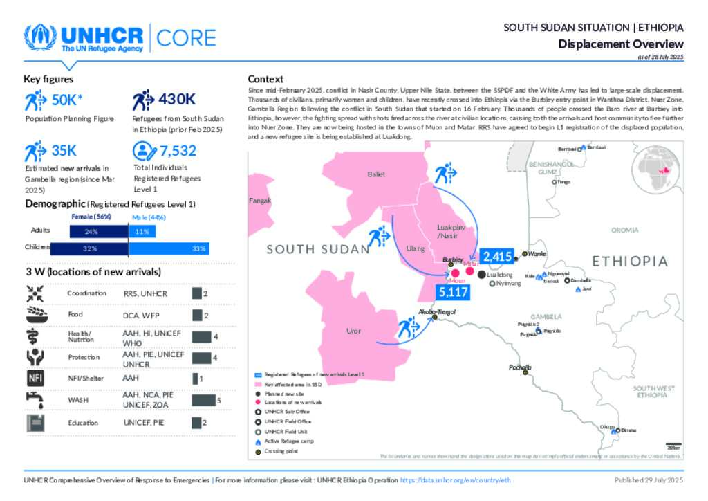 Ethiopia UNHCR CORE South Sudan as of 29, July 2025