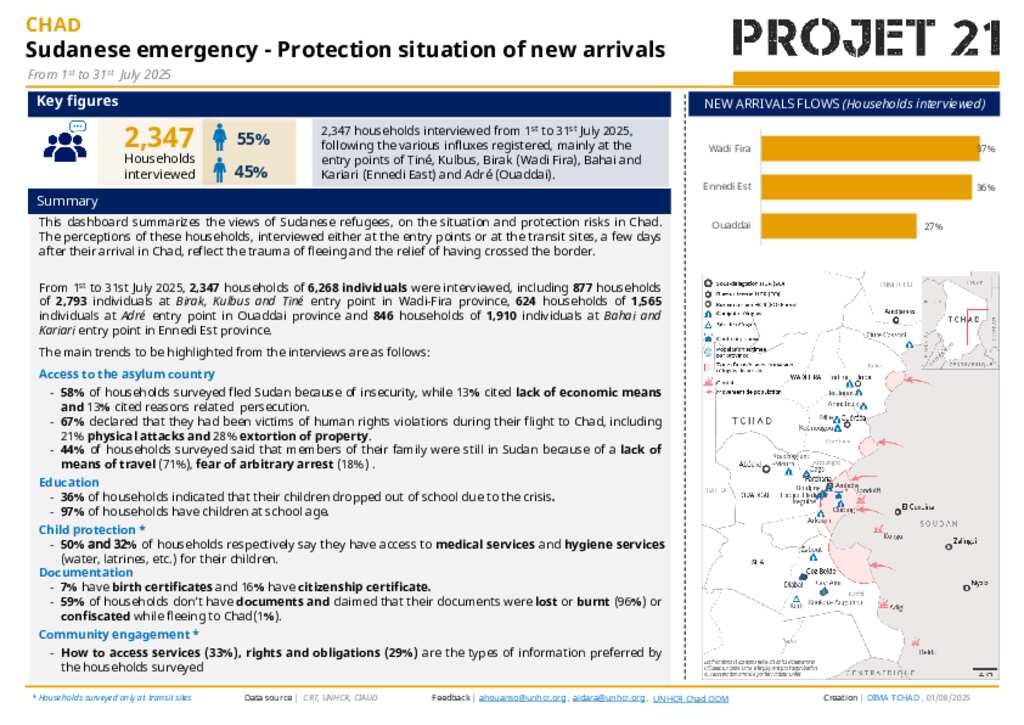P21 - TCHAD| Dashboard Preliminary results Monitoring Sudan Emergency (may 01 to 31 july, 2025)(EN)