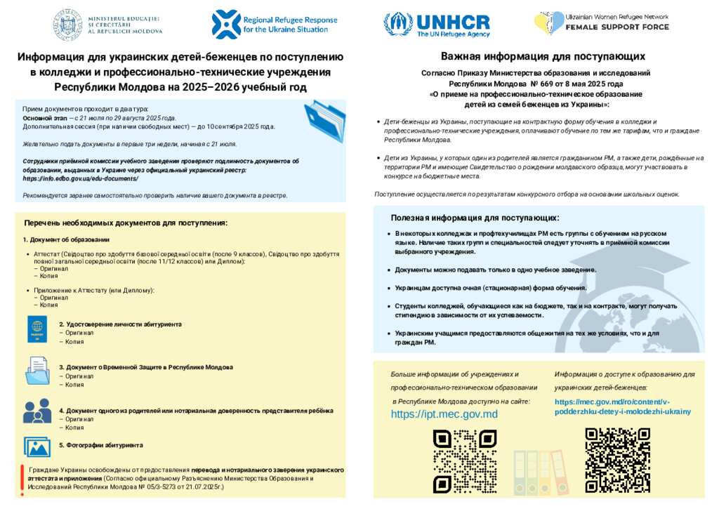 Ukraine Situation - Moldova: Inter-Agency Refugee Education Working Group (REWG) - College Admission Guide (July 2025) (RU)