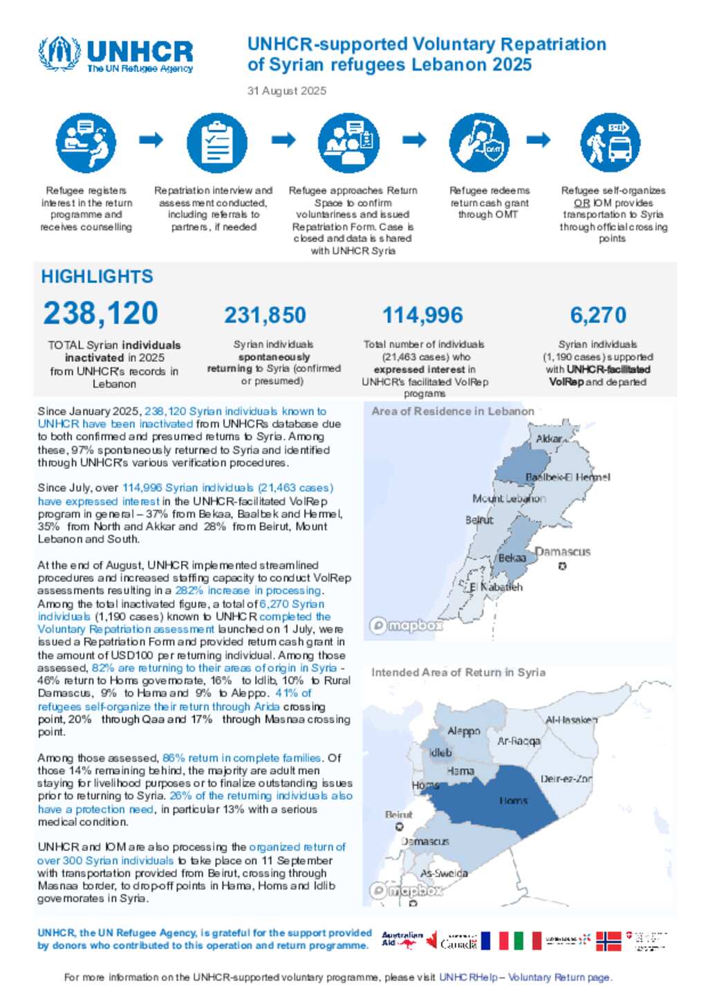 Voluntary Repatriation Programme - Lebanon, 31 August 2025
