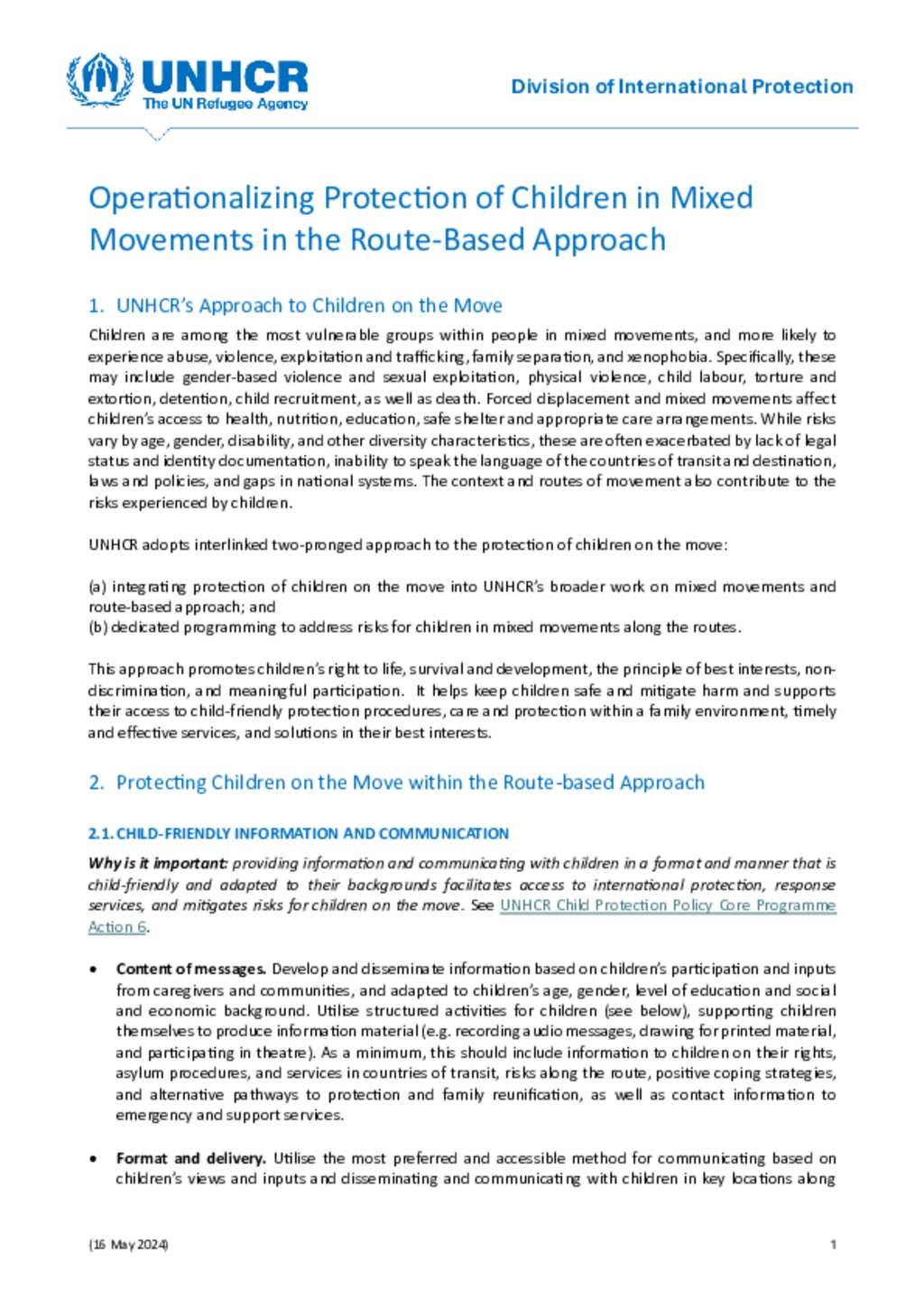 Operationalizing Protection of Children in Mixed Movements in the Route-Based Approach