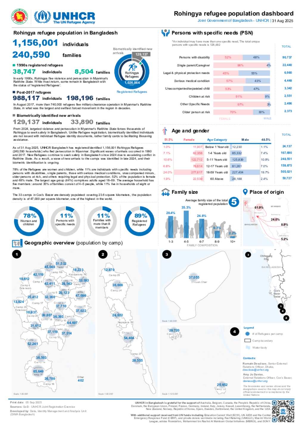 Joint Government of Bangladesh - UNHCR Population Dashboard as of August 2025