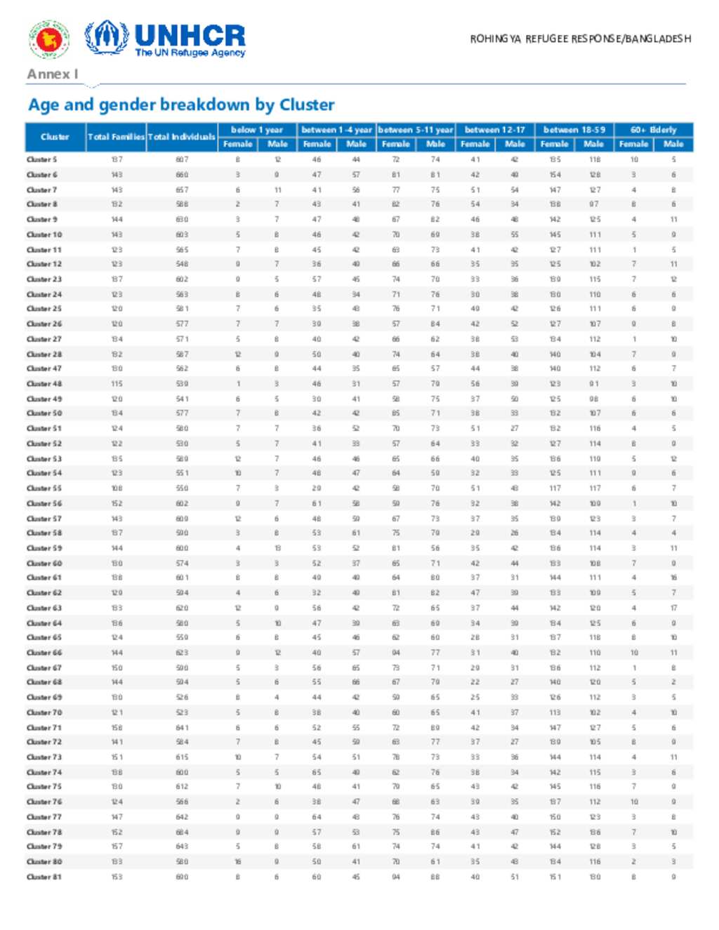 Joint Government of Bangladesh - Age Gender breakdown Bhasan Char as of August 2025