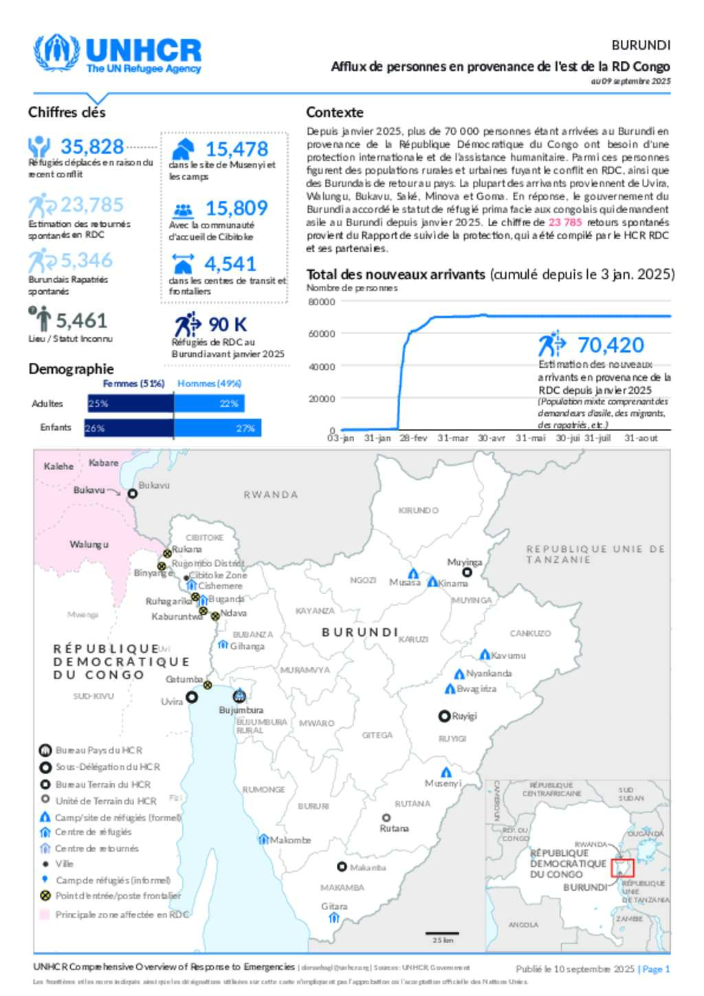 Ce document est une mise à jour quotidienne sur les nouveaux arrivants de l'est de la RDC au Burundi pour la situation actuelle dans l'est de la RDC.