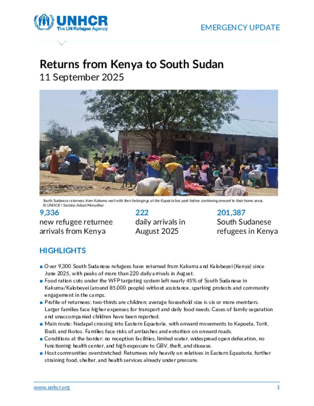 EMERGENCY UPDATE - Returns from Kenya to South Sudan