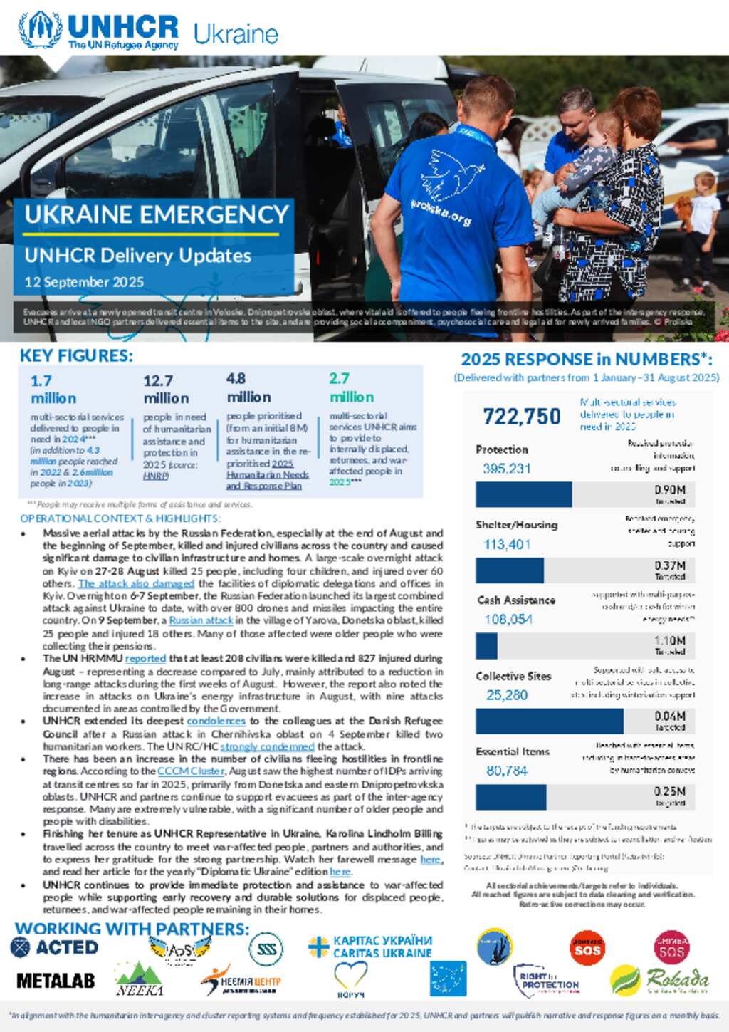 UNHCR Ukraine Delivery Updates - 12 September 2025