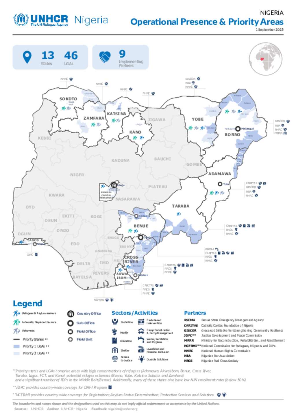 UNHCR Nigeria Operational Presence & Priority Areas Map - 1 September 2025