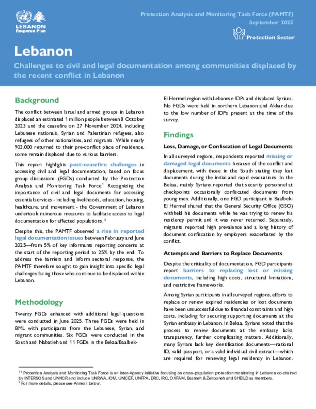 Protection Sector: Lebanon - Challenges to civil and legal documentation among communities displaced by the recent conflict in Lebanon