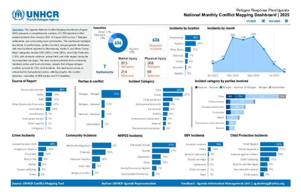 Uganda Refugee Response: Conflict Mapping Dashboard August 2025