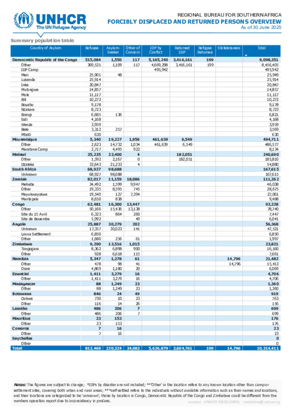 Comprehensive regional analysis of the UNHCR’s population by asylum country and location - June 2025
