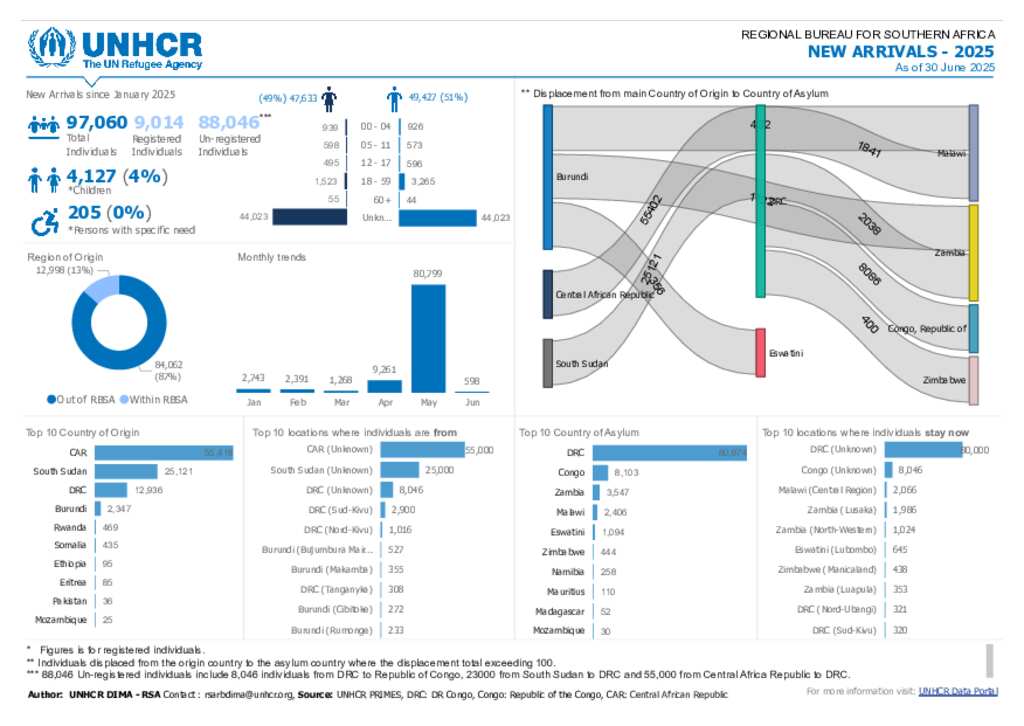 Overview of new arrivals in the Southern Africa Region - June 2025