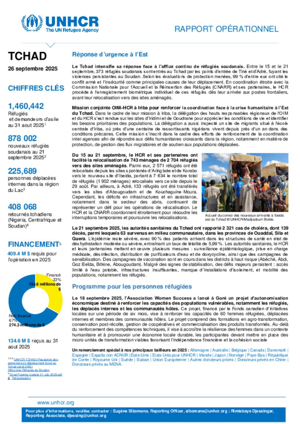 HCR TCHAD | Rapport opérationnel hebdomadaire du 26 septembre 2025