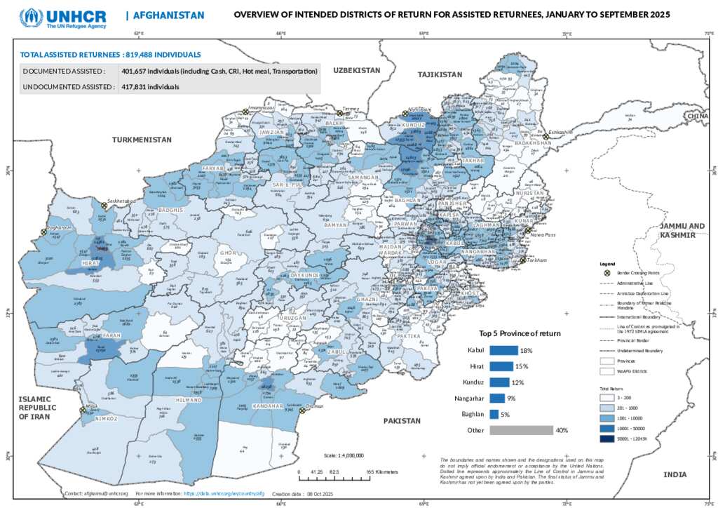 OVERVIEW OF INTENDED DISTRICTS OF RETURN FOR ASSISTED RETURNEES, JANUARY TO SEPTEMBER 2025