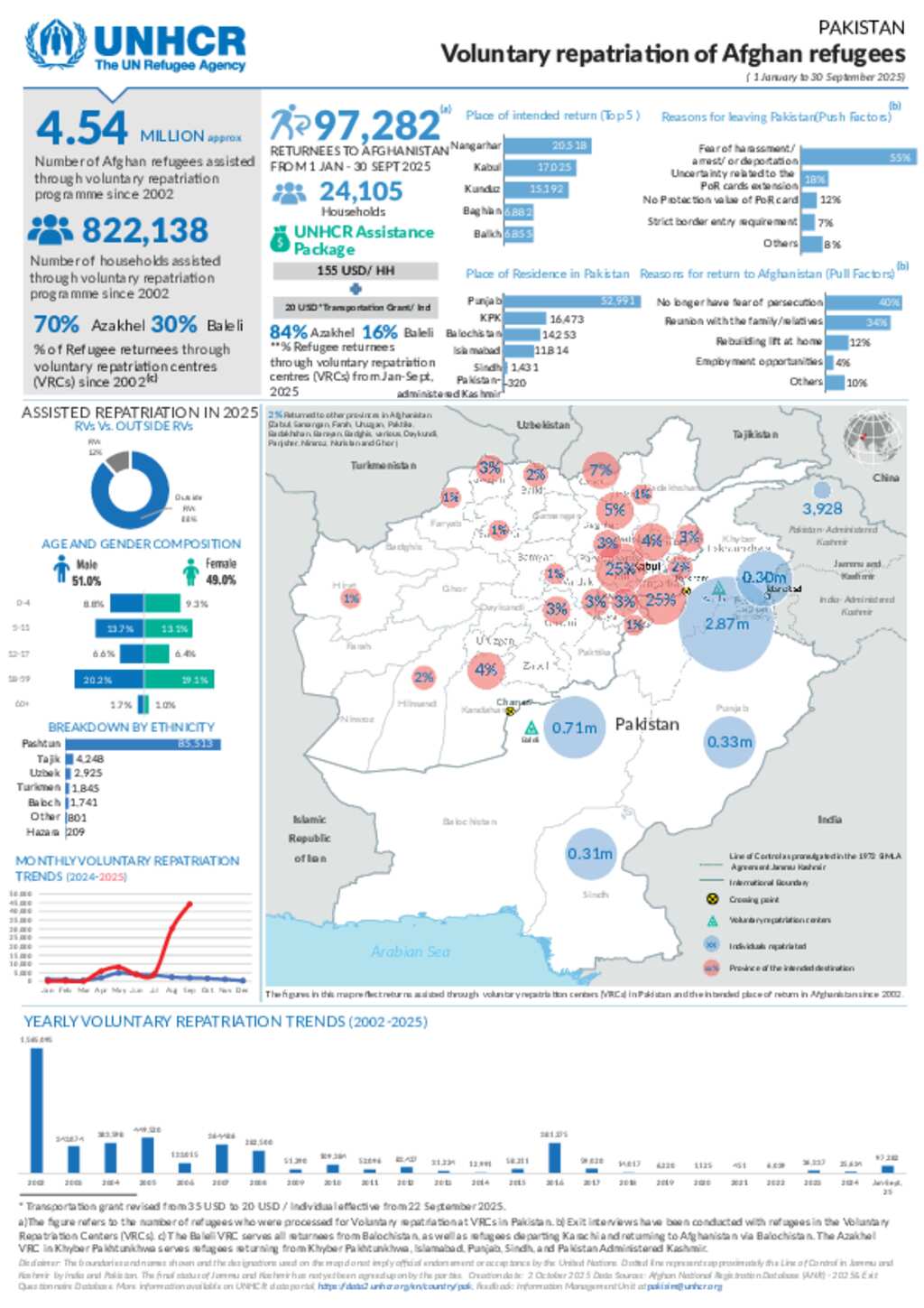 UNHCR - Pakistan Voluntary Repatriation of Afghan Refugees as of September 30, 2025