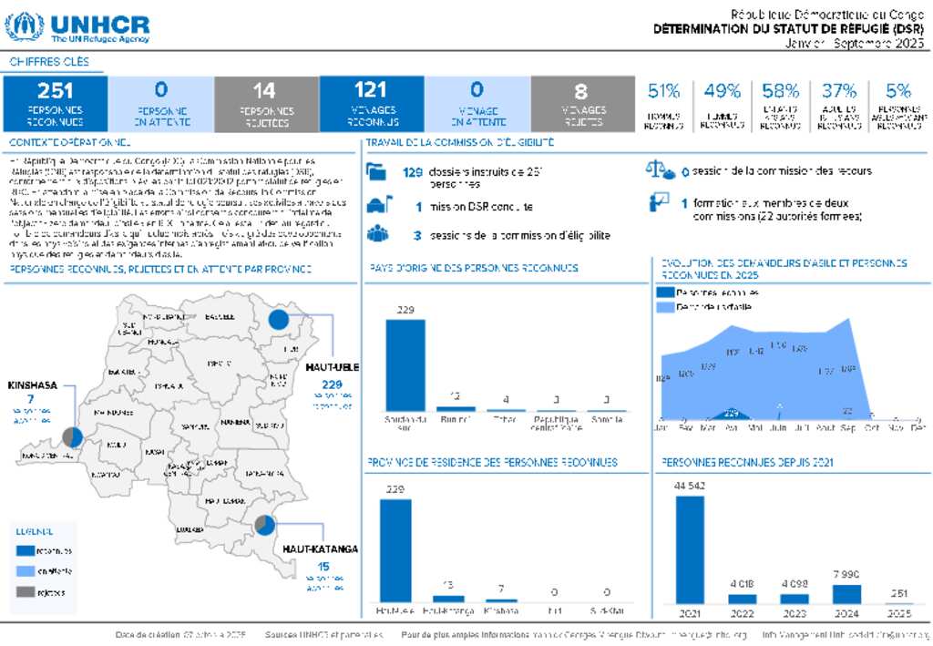 Détermination du statut de réfugié (DSR) en République Démocratique du Congo de janvier à septembre 2025