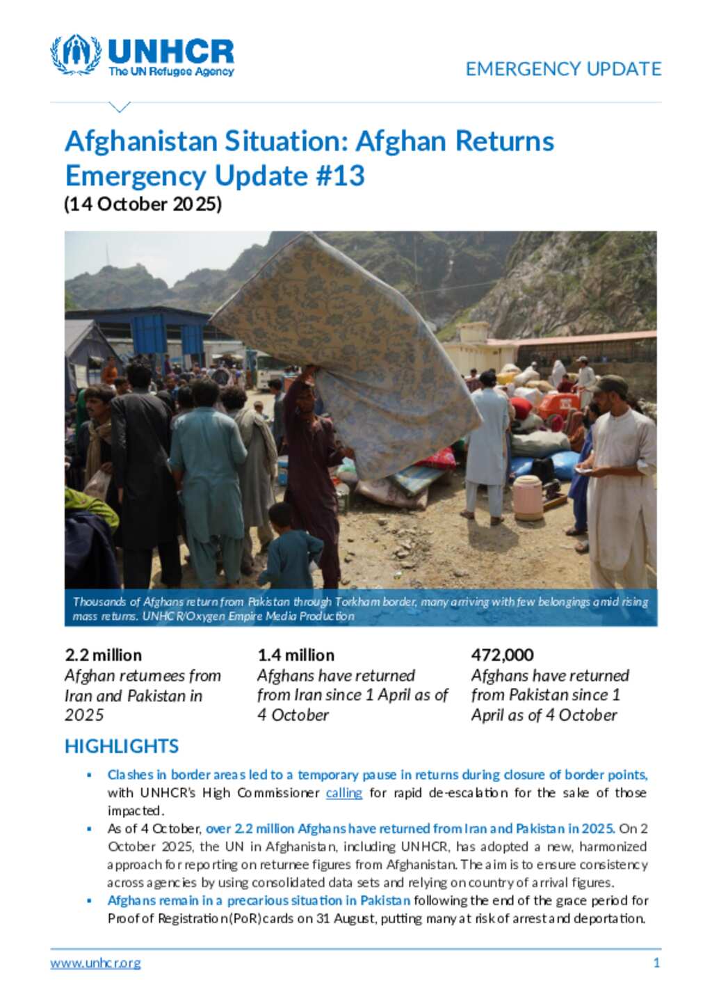 Afghanistan Situation: Afghan Returns from Iran and Pakistan Emergency Update #13
