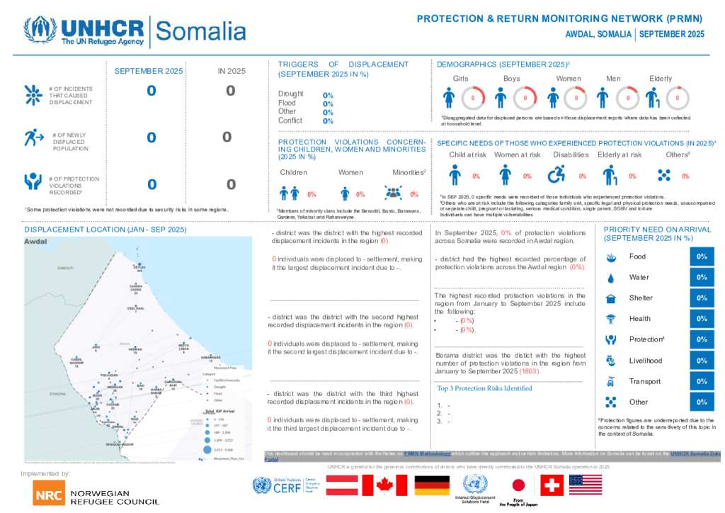 UNHCR Somalia PSMN Displacement and Protection Information - Region Level Dashboard - Sep 2025