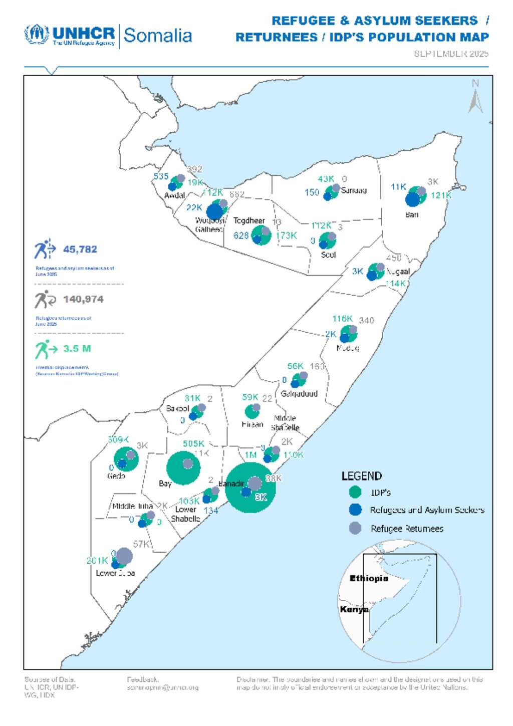 UNHCR Somalia Population Map - Sep 2025
