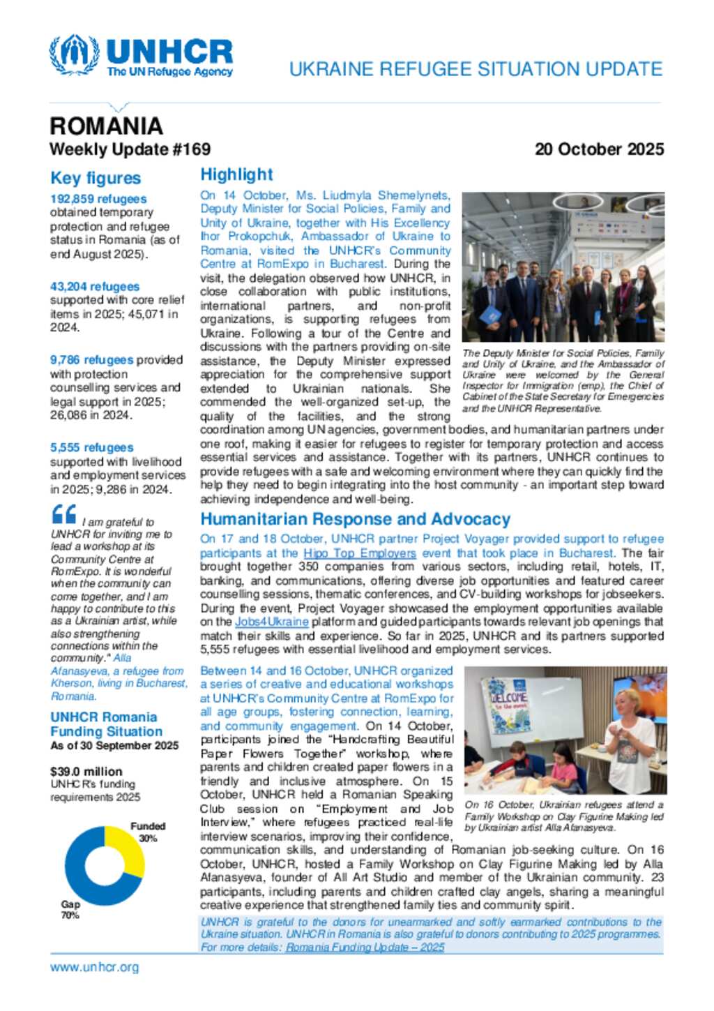UNHCR Romania Ukraine Refugee Situation Update - 20 October 2025