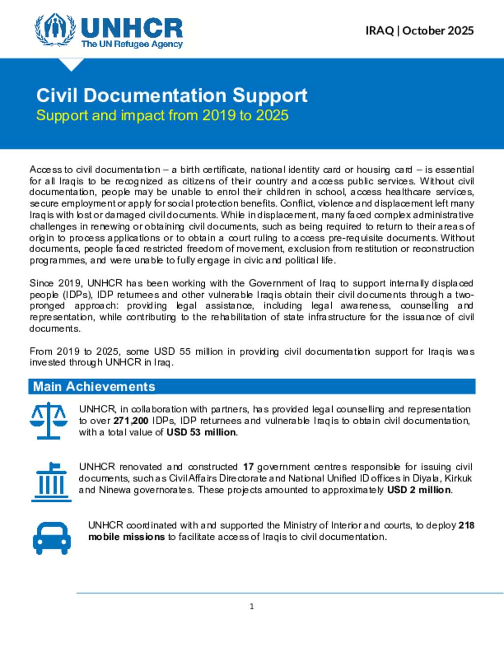 Civil Documentation Support | UNHCR Iraq Support and Impact from 2019 to 2025