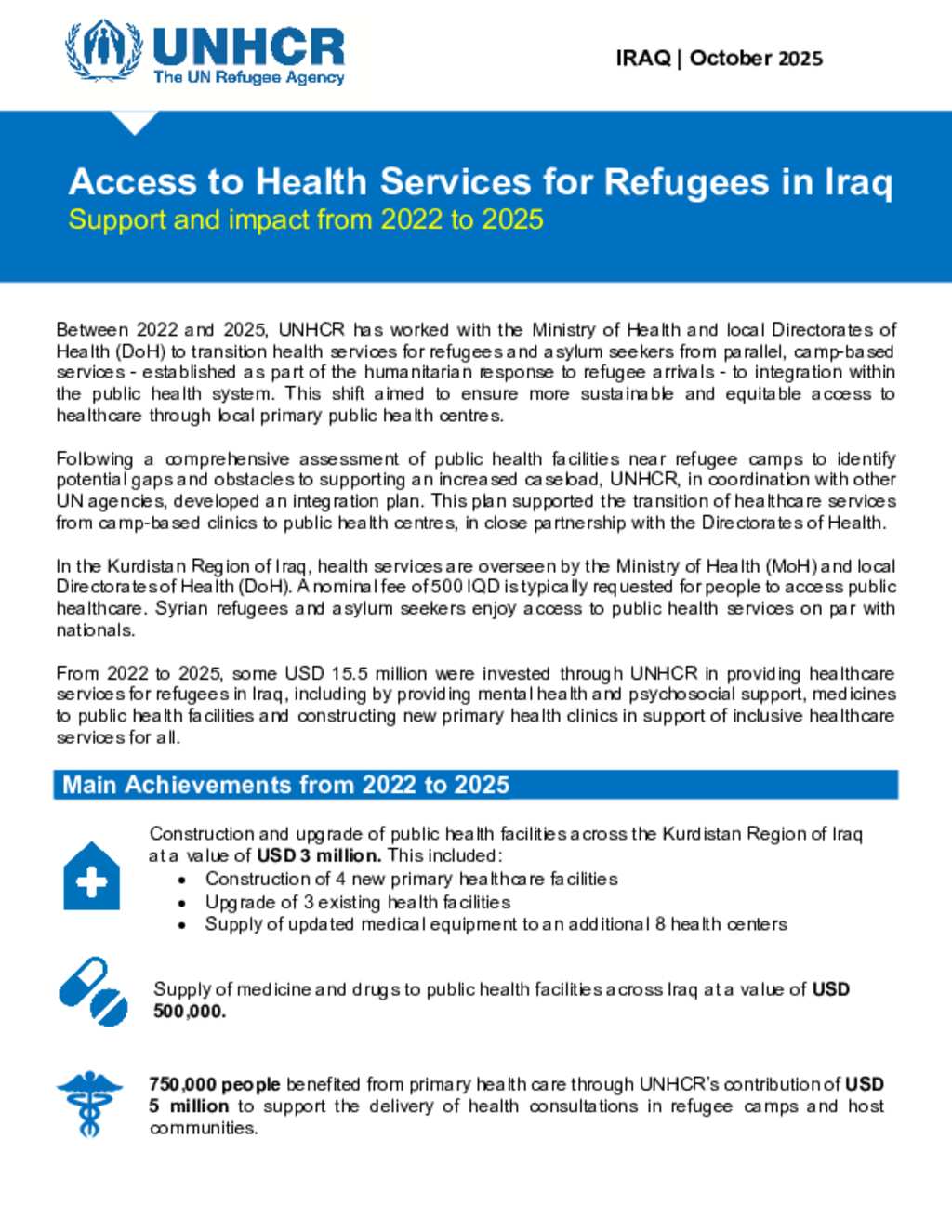 Access to Health Services for Refugees in Iraq | UNHCR Support and Impact from 2022 to 2025