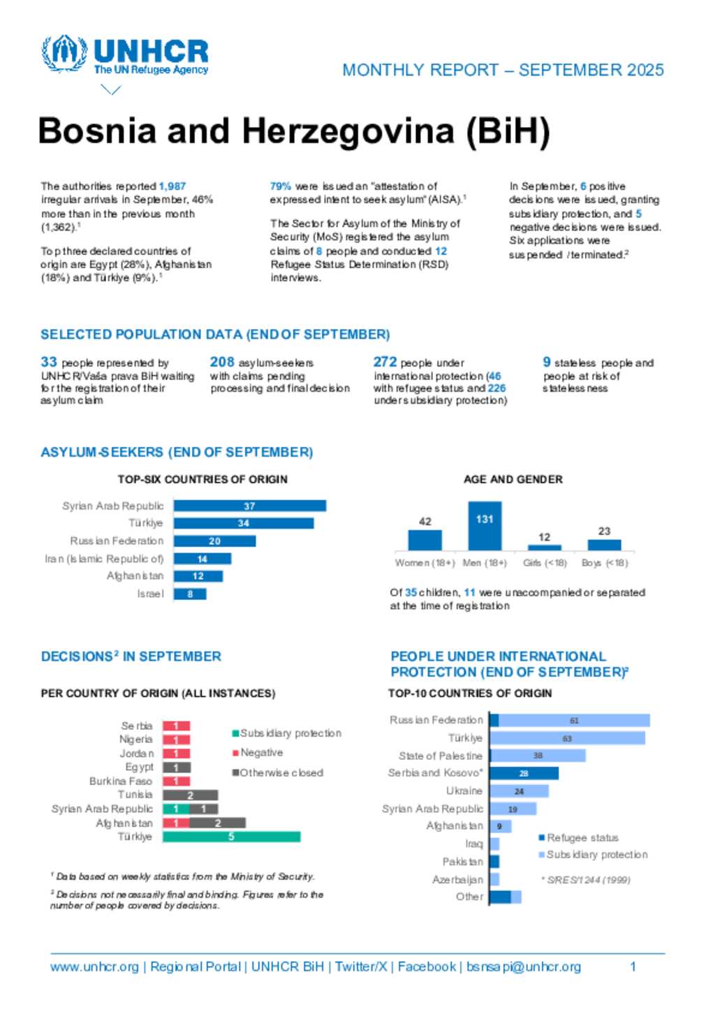 UNHCR BiH monthly update - September 2025