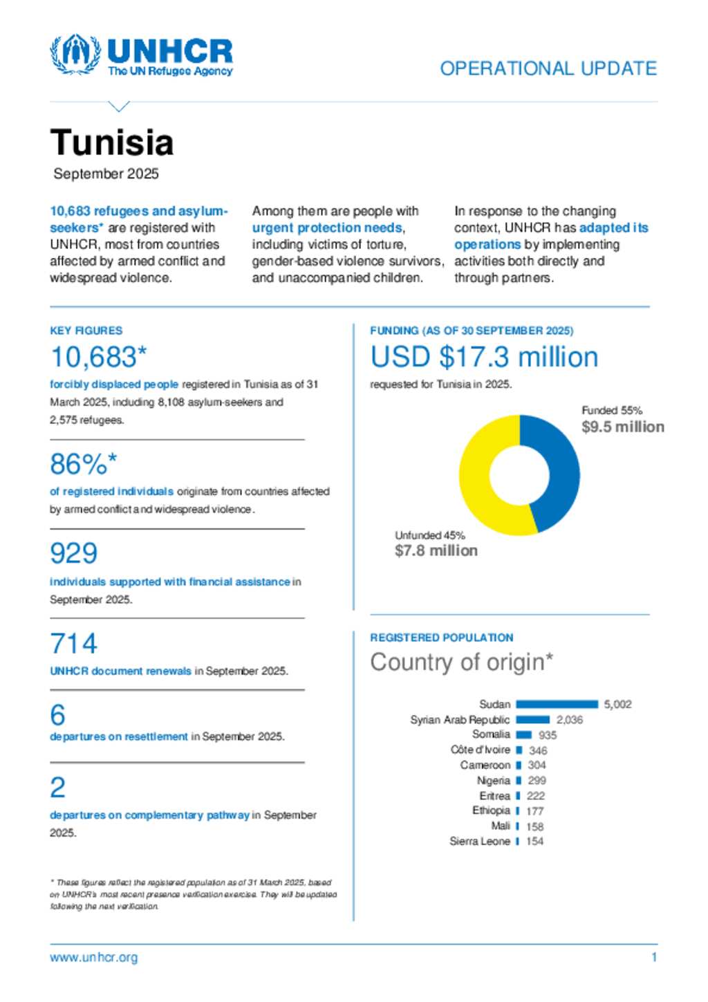 UNHCR Tunisia Monthly Operational Update (September 2025)