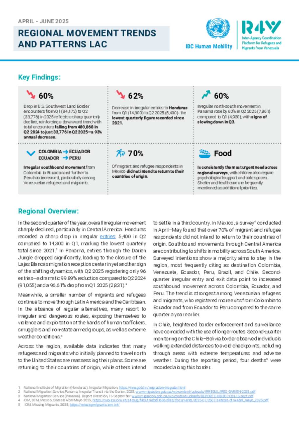 Regional Movement Trends and Patterns LAC - April-June 2025