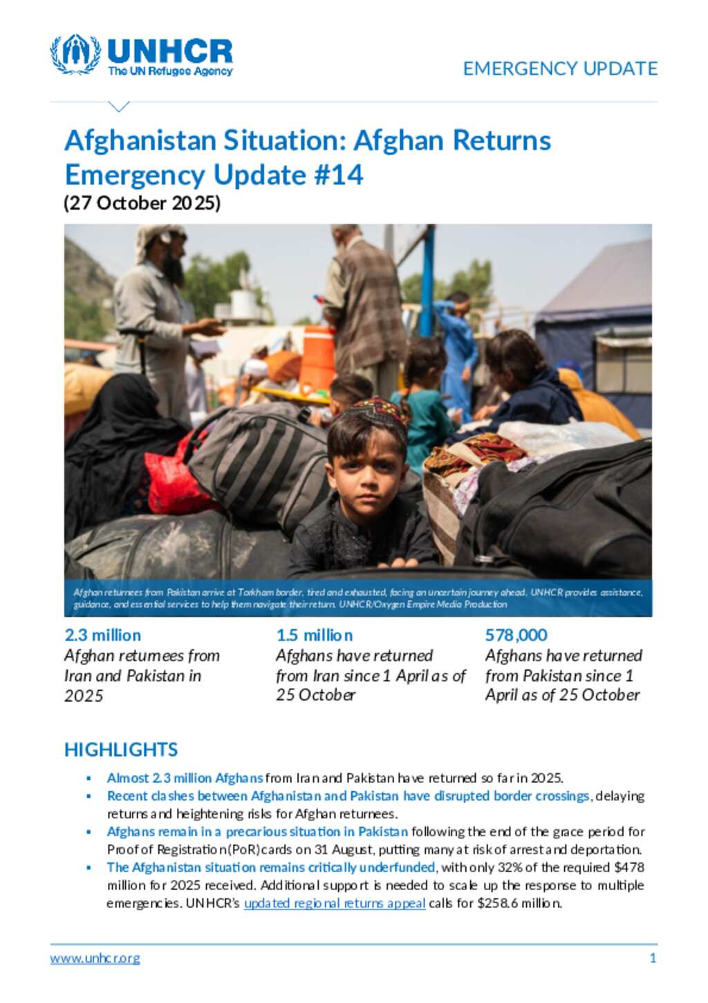 Afghanistan Situation: Afghan Returns from Iran and Pakistan Emergency Update #14