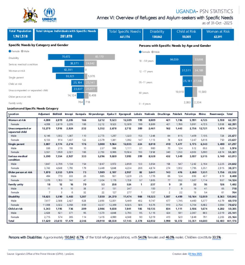 Uganda - Refugee Statistics October 2025 - PSN Dashboard