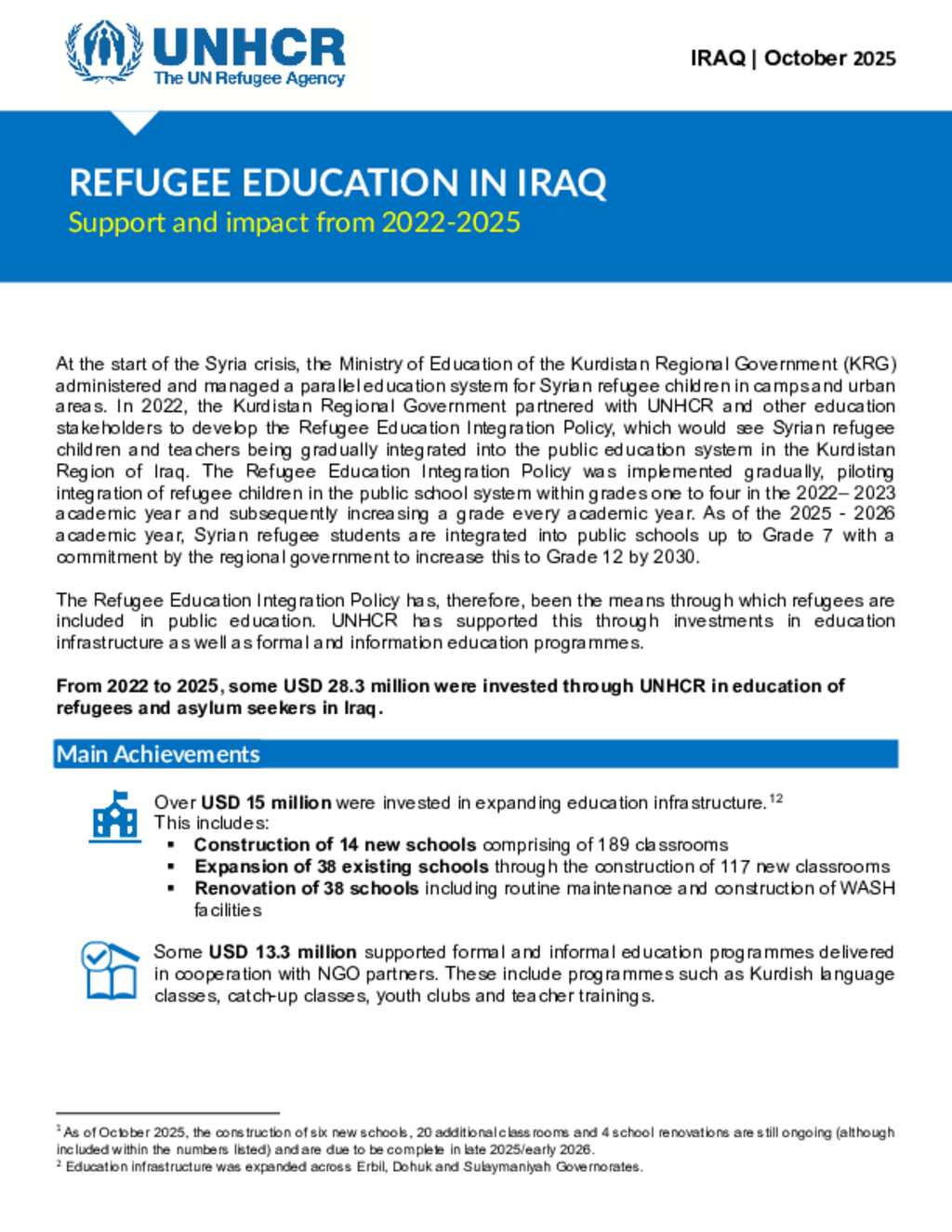 Refugee Education in Iraq - UNHCR Support and Impact from 2022 to 2025
