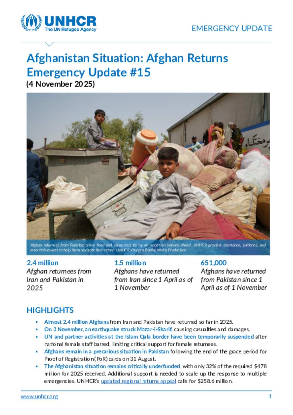 Afghanistan Situation: Afghan Returns from Iran and Pakistan Emergency Update #15