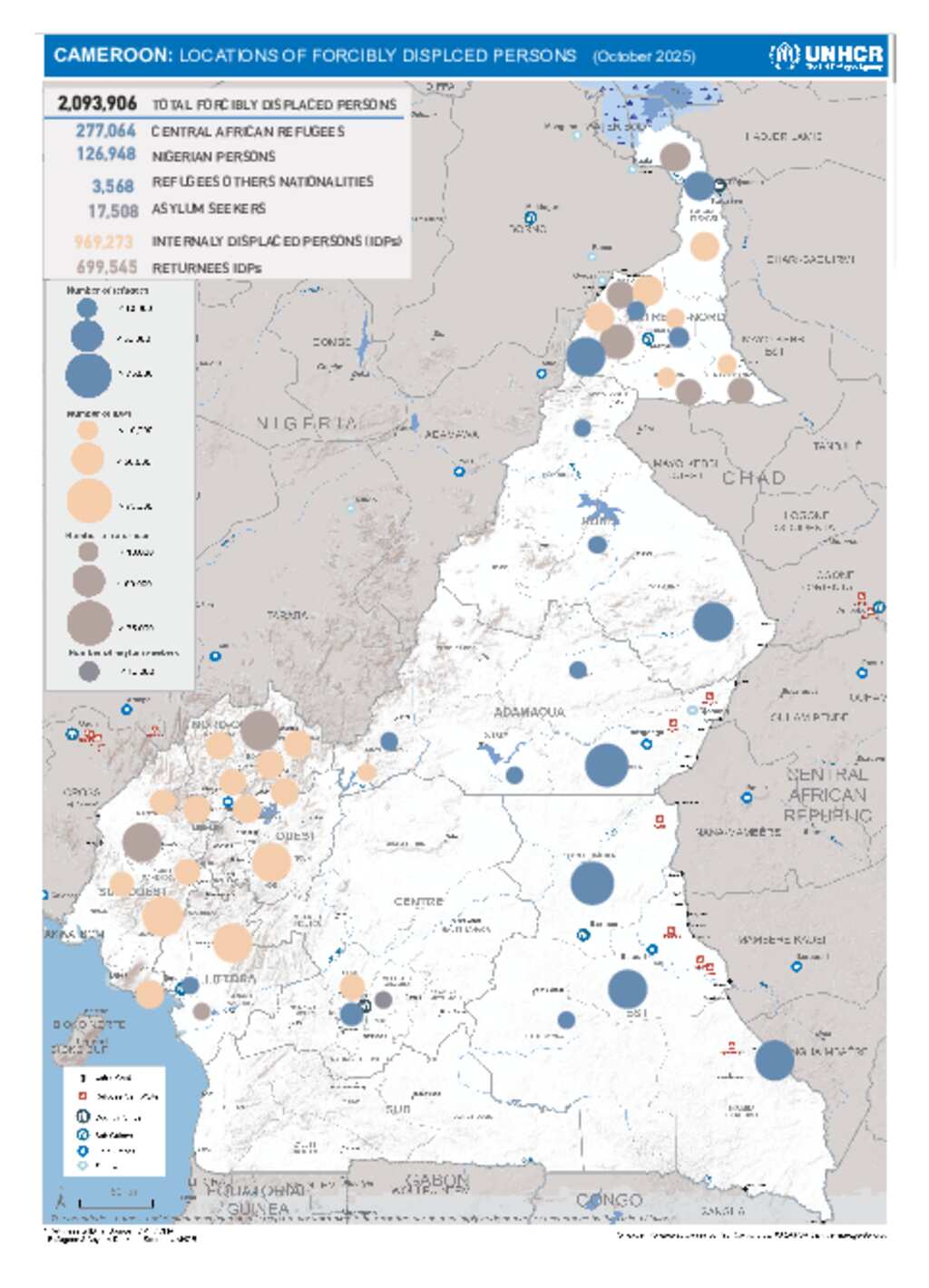 UNHCR CAMEROON - LOCATIONS OF UNHCR PERSONS OF CONCERN (October 2025)