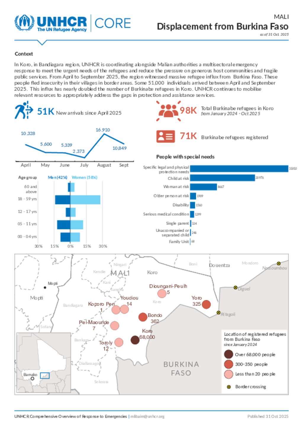 UNHCR Mali CORE: Displacement from Burkina Faso - 31 October 2025
