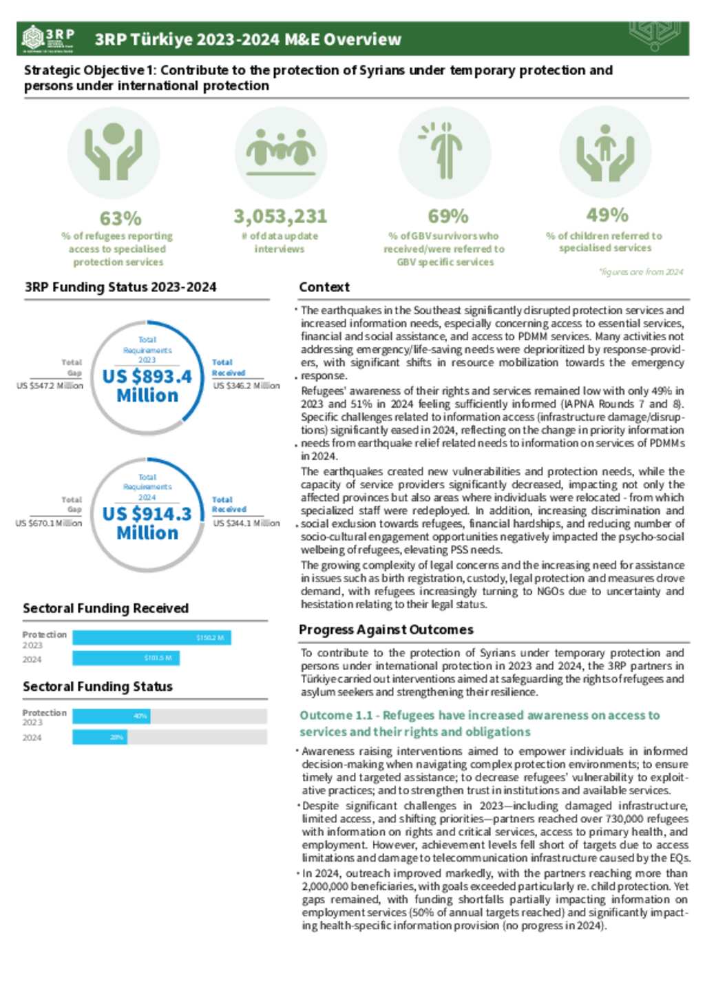 3RP Türkiye 2023-2024 M&E Overview - Strategic Objective 1 - Protection