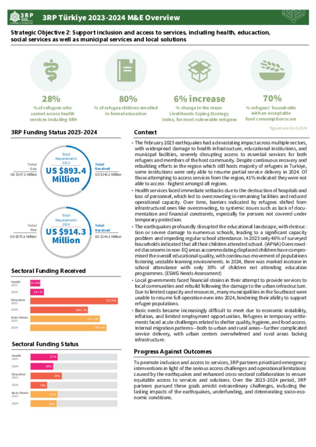 3RP Türkiye 2023-2024 M&E Overview - Strategic Objective 2 - Access to Services