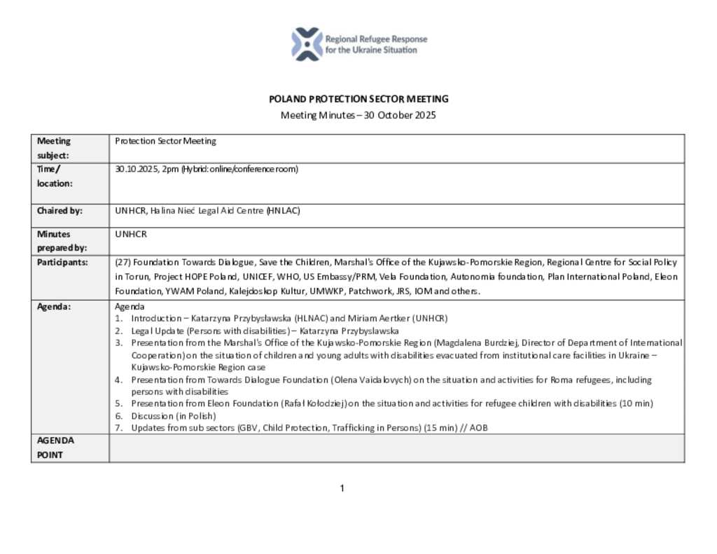 Poland: Protection Sector meeting - meeting minutes (30 October 2025)